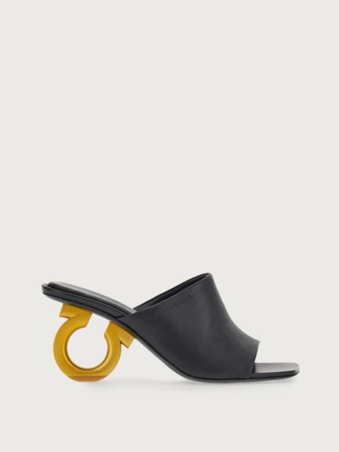 These soft nappa leather sliders feature a minimal construction on the upper and an original sculptural heel. The Gancini silhouette has been transformed into a graphic detail that supports the foot, complete with matte, golden finish. - Composition: lambskin nappa - Made in ITALY - Product code: 01F969 761944
