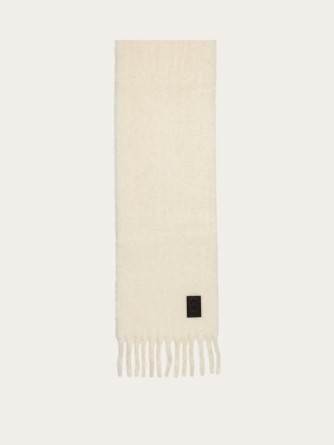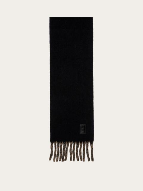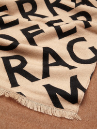 A new take on the metropolitan scarf, crafted from wool and cashmere. One side is solid color, while the other boasts a macro-lettering pattern in a contrasting ombre hue. Mini fringing on hem. - length 72.8 IN width 13.7 IN - Composition: 95% wool, 5% cashmere - Made in ITALY - Product code: 320795 770198
