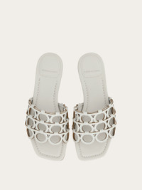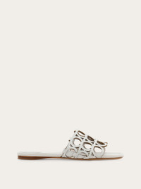 A simple silhouette with intricate details. Laid back yet iconic, the new Gancio slide showcases the expert workmanship of the House of Ferragamo. A series of Gancini links in the chain-like upper is complemented by the sleek tonal insole. - Composition: calfskin - Heel 0.5 cm - Made in ITALY - Product code: 01J840 784148
