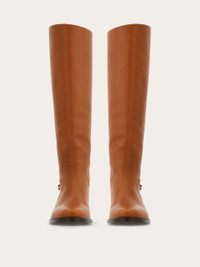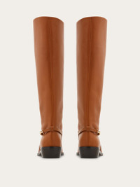 Taking cues from classic equestrian riding styles, this knee boot features a tubular shaft with a discreet zipper along the inner seam. The streamlined profile is enriched with the interlacing golden F buckle at the back of each ankle and set on a slightly tapered heel, traced with rubber for comfort. - Composition: calfskin - Made in ITALY - Product code: 01K226 784902