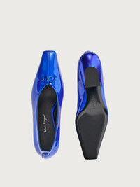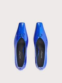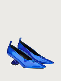 F-stands for future. This season’s F heel is reinterpreted with an artistic flair for a contemporary, iconic look which is truly unique. Featured here on this elegant pump, it is complemented by the Gancini buckle at the opening. Made of the softest nappa leather, it features a modern, slightly closed neckline that draws a central seam at the tip. The 5.5cm heel height assures comfort all day long. - Heel 5,5 cm - Composition: patent leather - Made In ITALY