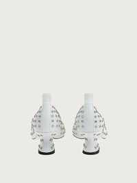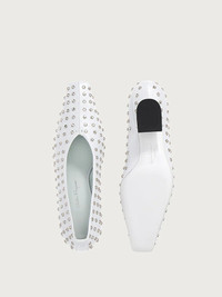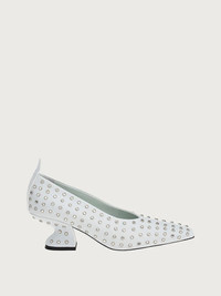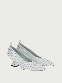 A bright future lies ahead: new pump shoe with futuristic lines, where iconic Ferragamo elements meet exclusive new features. Made of soft, Italian nappa leather, this slip on features a slightly closed neckline with a mini Gancini silhouette, that draws a seam up to the tip, for a modern look that is echoed in the curved heel. The 5.5cm height is perfect for all day comfort and style. - Heel 5,5 cm - Composition: nappa leather - Made In ITALY