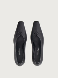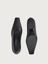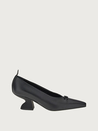 F-stands for future. This season’s F heel is reinterpreted with an artistic flair for a contemporary, iconic look which is truly unique. Featured here on this elegant pump, it is complemented by the Gancini buckle at the opening. Made of the softest nappa leather, it features a modern, slightly closed neckline that draws a central seam at the tip. The 5.5cm heel height assures comfort all day long. - Heel 5,5 cm - Composition: nappa leather - Made In ITALY