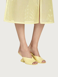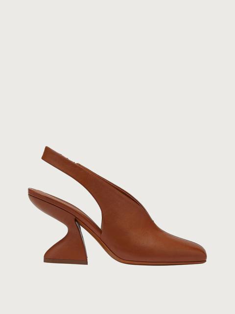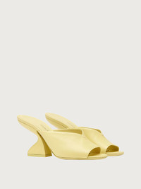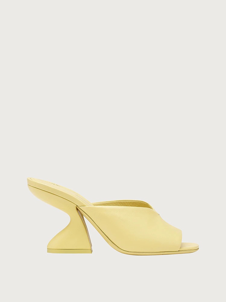 Slink your way through the summer in this sassy, super stylish sandal with an avant garde vibe. The open toe lends a sensual feel to the sinuous lines, with high neckline and sculptured heel, inspired by the iconic F-wedge. Stable and comfortable, it is made of lamb nappa in cool summer shades, with a slightly squared toe and visible stitching that runs along the upper. The 8.5 cm heel guarantees all day comfort. - Heel 8.5cm - Composition: Nappa leather - Made In ITALY