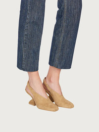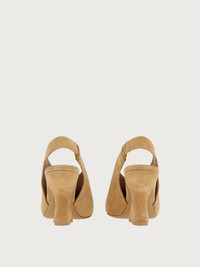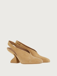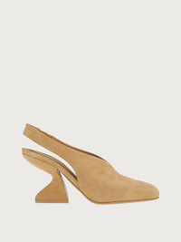 Modern art for your feet. Turn heads in these fabulous slingback that combine the softest leather with contemporary lines and a sinuous sculptured heel, inspired by the iconic F-wedge. The effect is a harmonious blend of squared edges, a high neckline and visible stitching with impeccable details, such as the elasticated leather ankle strap. Available in neutral and bold shades to combine with the coolest looks of the season. The 8.5cm heel will allow you to strut your stuff in absolute comfort. - Heel 8,5 cm - Composition: suede - Made In ITALY