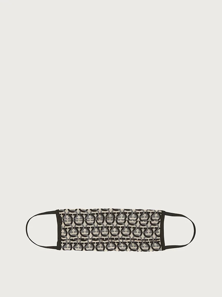Made of a single layer of 100% Crepe de Chine Silk, this non-medical grade Gancini print face mask with ear straps has a comfortable pleated design. For general purposes only; not intended for healthcare or medical use. Face masks are Final Sale. Care: Machine washable warm; tumble dry low. No chlorine bleach. All masks are final sale and cannot be returned. Ear loops are 1" longer in size L mask. - Composition: 100% Crepe de Chine silk - Made In ITALY