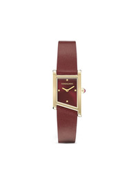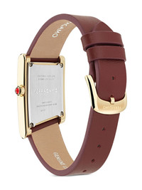 Ronda 36mm Highlights - Red dial - Burgundy leather strap - Square case shape - 36mm case size - Quartz movement - Gold bezel - Ruby crown - This item comes with a standard one-year warranty from the boutique. Imported
