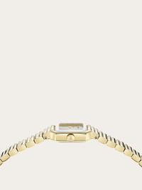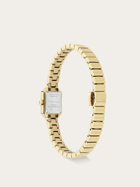 Ferragamo Crystal Petite captures the essence of refined, magnetic luxury, balancing retro charm with impeccable craftsmanship. The rectangular case reimagines the Ferragamo Crystal design in a miniature iteration - conceived as a true wrist jewel. Size: 15 X 20mm Movement: RONDA 1042 - 2 hands quartz Case: IP Yellow Gold Dial: White enamel Bracelet: Yellow Gold bracelet - Butterfly buckle with Ferragamo logo Glass: Sapphire crystal, anti-reflection, scratch-resistant WaterResistance: 30meters 2+2 Year Warranty Outer box, packaging, warranty and instruction booklet - Composition: Stainless steel case and bracelet - Made in SWISS - Product code: 611332 789297