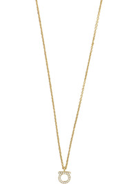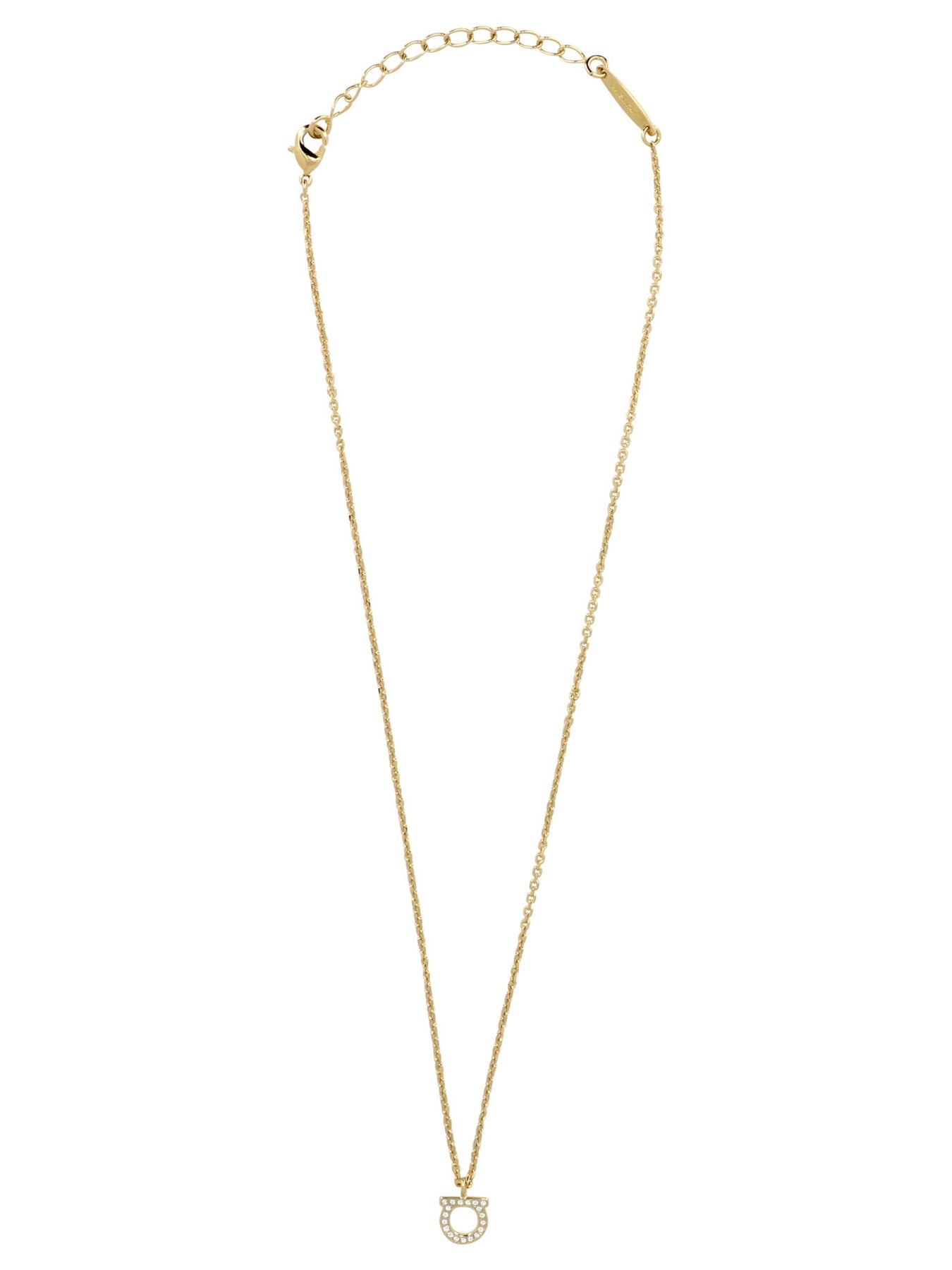 - Ferragamo's "Gancini" necklace is an ode to timeless elegance. Perfect for the modern woman who likes to stand out with discretion and luxury, this necklace features a refined design that is suitable for multiple occasions, from work to a special evening out. It is an ideal accessory for those who appreciate sophisticated details and sophistication in their jewelry. - - Small Gancini pendant covered with crystals - - Adjustable length, from 40 to 46 cm - This necklace pairs beautifully with Gancini earrings from the same brand for a coordinated look. For a more relaxed outfit, try wearing it with a silk blouse and a Ferragamo handbag. If you want a more formal look instead, complement it with a pair of stiletto heeled pumps. - Colours: Gold - Composition: 99% ottone 1% vetro - Made in: Italy - MPN: 0696654 Composition: 99% ottone 1% vetro