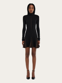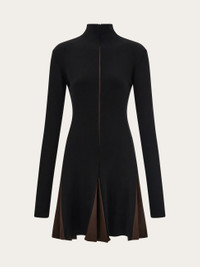 Short fit and flare dress made from pure jersey viscose. The strategically placed slits with contrasting inserts are inspired by the artist Lucio Fontana. With a high collar and long sleeves, it has a short, flared skirt cut at mid-thigh. Made using 95% responsibly-sourced viscose. - Composition: 95% viscose, 5% elastane - Made in ITALY - Product code: 13C665 788937