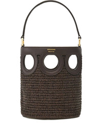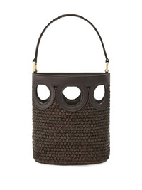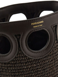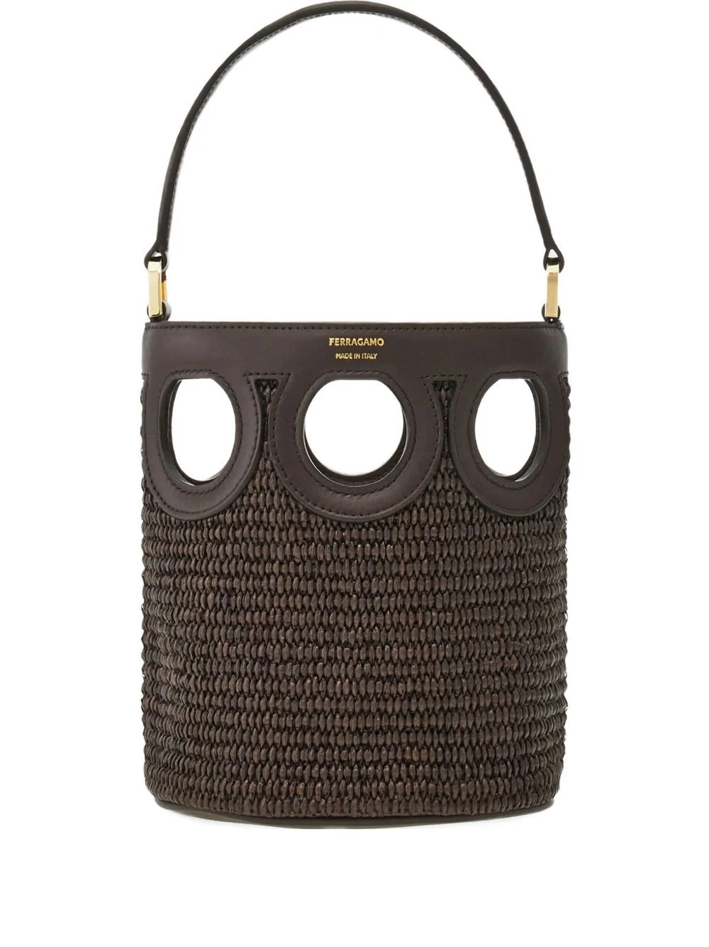 Gancini bucket bag Highlights - Brown - Detachable single top handle - Cut-out detail Made in Italy Composition Outer: Raffia 75%, CALFSKIN 25% SIZE & FIT Measurement DEPTH 4.72 in(12 cm) HEIGHT 6.69 in(17 cm) WIDTH 7.08 in(18 cm)