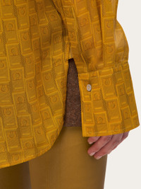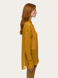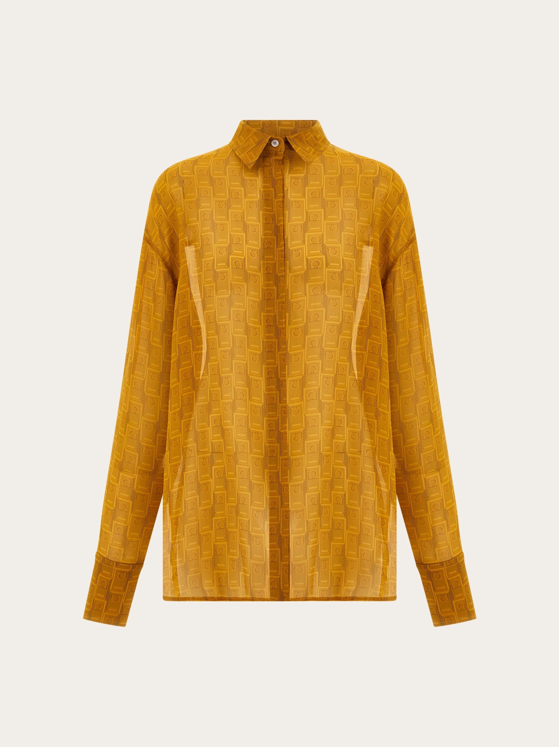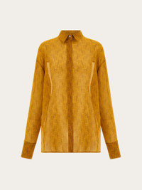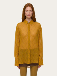 Inspired by the Hug clasp, the new Ferragamo monogram is the star of this pure silk shirt. The georgette silk is ultra-light and slightly transparent, for a sensual look complemented by a relaxed fit with covered mother-of-pearl buttons, an asymmetrical hem and a high cuff with diagonal buttonhole. - Composition: 100% silk - Made in ITALY - Product code: 13G356 777869