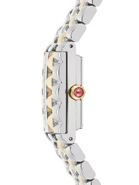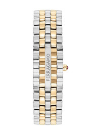 Ferragamo Secret 30mm Highlights - 30mm x 18.5mm - Yellow gold - Quartz movement - Rectangular face - Sunray-patterned dial - Baton hands - Cabochon crown - Sapphire-crystal glass - Anti-reflective coating - Scratch-resistant glass - Stainless steel and gold link bracelet - Butterfly clasp fastening - Water resistance up to 30m/3 atm - This item comes with a standard two-year warranty from the brand. - Your purchase will arrive with a gift box. Imported SIZE & FIT Measurement DIAMETER 1.18 in(3 cm)