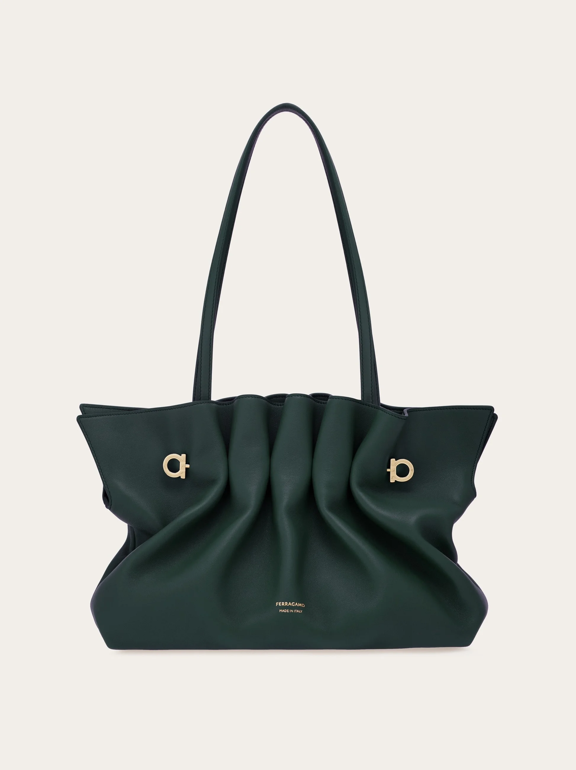 A touch of effortless elegance, destined to be your new crush. This shoulder bag reinterprets an archive design with a modern edge. The clean-cut silhouette is enhanced by soft nappa leather, gathered at the top with a Gancio pin for a bold yet effortless look. - A) Height 9.6 IN B) Length 13.7 IN C) Width 4.7 IN - Composition: nappa - Handle drop: 10.2 in/26 cm - Medium - Made in ITALY - Product code: 219960 785050