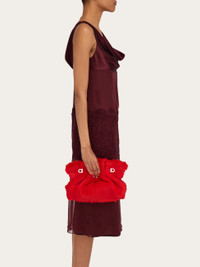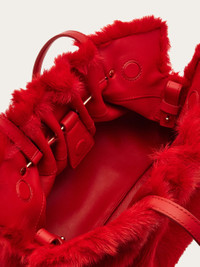 To have and to hold, the softest iteration of the Ferragamo Soft Bag, cut from mink-effect kid skin. A maxi Gancio buckle pierces through the leather and gathers it in sumptuous folds across the top. Carry as a clutch or wear over the shoulder via the foldable handle. Removable shoulder strap. - A) Height 7.8 IN B) Length 11.4 IN C) Width 3.9 IN - Composition: kid leather - Handle drop: 9.8 in/25 cm - Made in ITALY - Product code: 21A270 787841