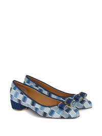 Varina checked block-heel pumps Highlights - Features a distinctive checked design - Includes a charming bow detail at the front - Designed with a comfortable block heel - Presented in shades of blue - Ideal for adding a stylish touch to any outfit Made in Italy Composition Outer: Cotton 100% Sole: Rubber 100% Lining: Calf Leather 100%