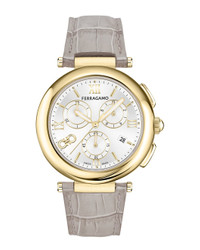 - About the brand: The Gancini, The Vara, and all the icons in-between. - Chronograph Date Quartz chronograph movement - Grey Calf Leather strap - Ardillon clasp - Stainless Steel bezel - Stainless Steel case - Sapphire crystal - Push-pull crown - Silver dial - Date display - Case: 40mm x 11.05mm - Bracelet/strap: 14mm wide x 6.9in long - Water-resistant up to 50 meters - Manufacturer's limited warranty - The Watch Size Guide - Our products are 100% genuine. In some cases we purchase merchandise from trusted independent suppliers and not directly from the brand owner. In all cases we stand by the authenticity of every product sold on our site.