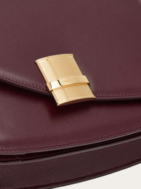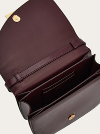 This unique, eye catching edition to the Ferragamo shoulder bag collection is a touch of contemporary elegance. The classic silhouette is brought to life with an asymmetric front flap that is fastened by an iconic Gancio clasp. Made of dappled calfskin, it has visible stitching around the edges and a spacious, lined interior with flat pocket and slots for cards and documents. Adjustable shoulder strap. - height 18.0 CM / 7 IN length 23.0 CM / 9 IN width 8.0 CM / 3.1 IN - Composition: dappled calfskin - Product code: 216798 769382 - Made in ITALY