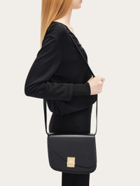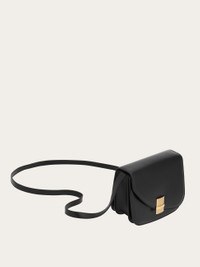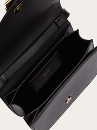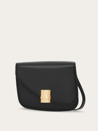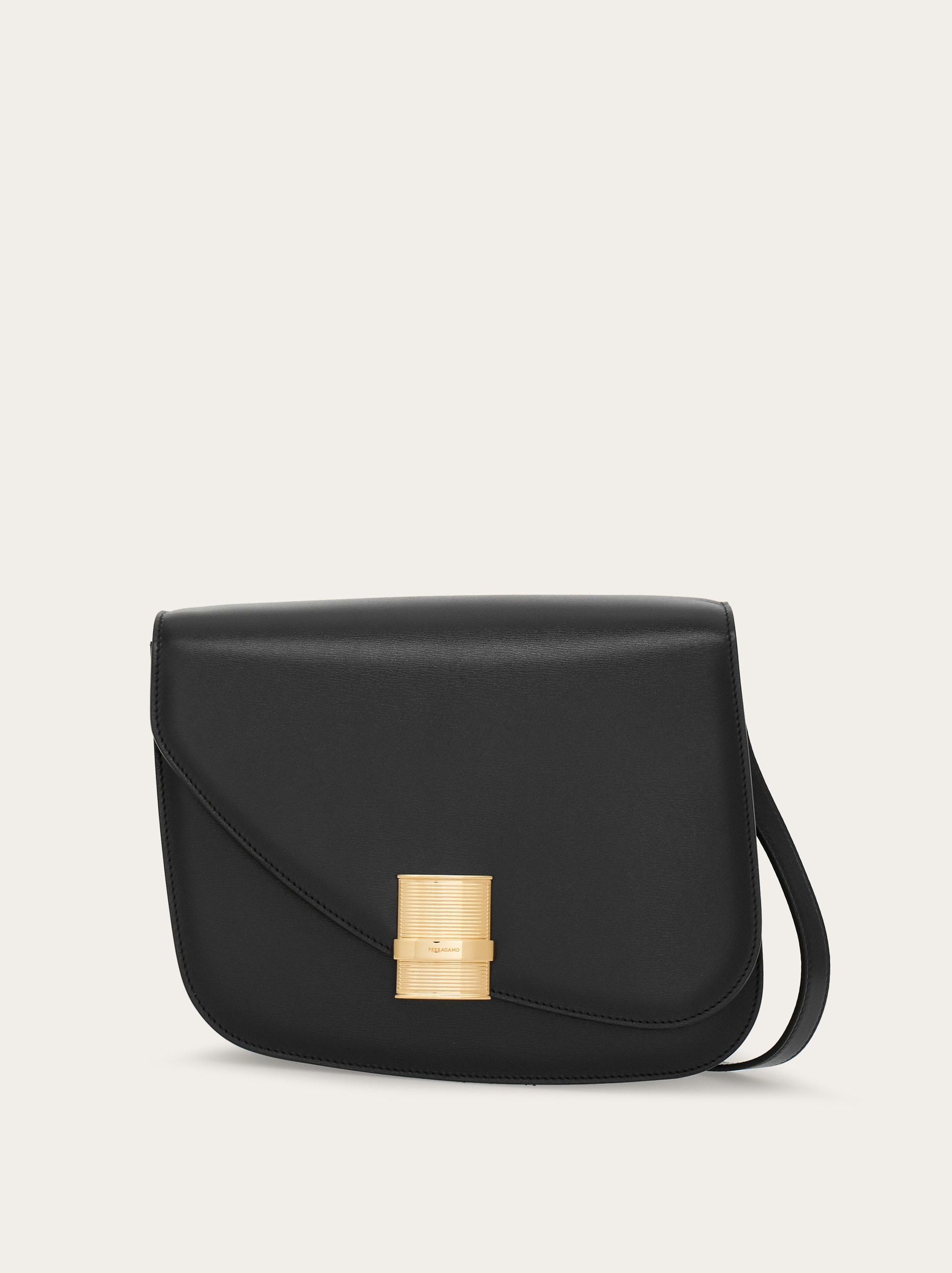 This unique, eye catching edition to the Ferragamo shoulder bag collection is a touch of contemporary elegance. The classic silhouette is brought to life with an asymmetric front flap that is fastened by an iconic clasp. Made of dappled calfskin, it has visible stitching around the edges and a spacious, lined interior with flat pocket and slots for cards and documents. Adjustable shoulder strap. - height 7.0 IN length 9.0 IN width 3.1 IN - Composition: dappled calfskin - Made in ITALY - Product code: 216798 769381