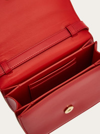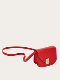This unique, eye catching edition to the Ferragamo shoulder bag collection is a touch of contemporary elegance. The classic silhouette is brought to life with an asymmetric front flap that is fastened by an iconic clasp. Made of dappled calfskin, it has visible stitching around the edges and a spacious, lined interior with flat pocket and slots for cards and documents. Adjustable shoulder strap. - height 6.1 IN length 7.4 IN width 2.9 IN - Composition: dappled calfskin - Made in ITALY - Product code: 215971 769386