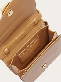 This unique, eye catching edition to the Ferragamo shoulder bag collection is a touch of contemporary elegance. The classic silhouette is brought to life with an asymmetric front flap that is fastened by an iconic Gancio clasp. Made of dappled calfskin, it has visible stitching around the edges and a spacious, lined interior with flat pocket and slots for cards and documents. Adjustable shoulder strap. - height 15.5 CM / 6.1 IN length 19.0 CM / 7.4 IN width 7.5 CM / 2.9 IN - Composition: dappled calfskin - Product code: 215971 769388 - Made in ITALY