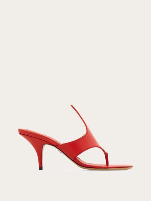 Heritage inspired with a sleek and contemporary silhouette, the Fiamma sandal is a delicious cocktail of comfort and refinement. The almond tip and slim heel are accompanied by a wide thong strap that slips through the toes and securely holds the foot. - Composition: calfskin - Heel 7.0 cm - Made in ITALY - Product code: 01K146 782734