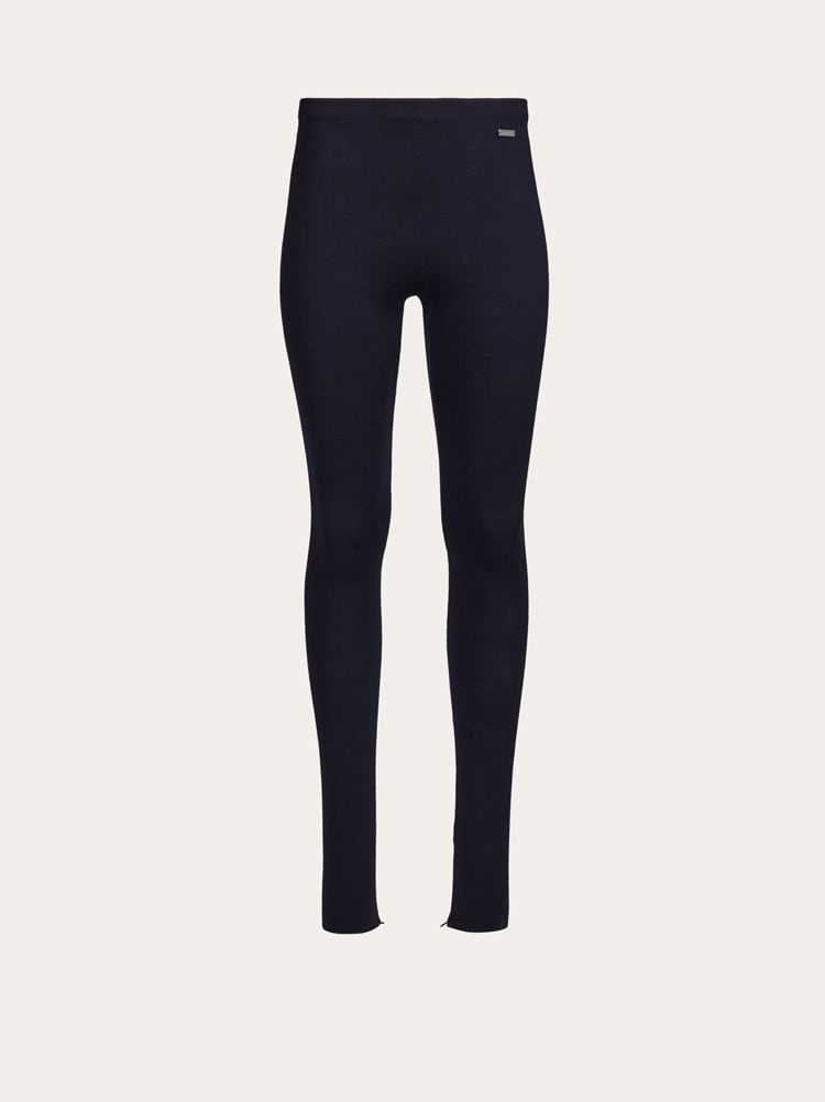 A new staple in a luxurious key. Made of a blend of pure virgin wool, these ultra soft leggings feature a compact rib knit with a slim fit and hidden zip at the ankle. Elastic insert at the waist and custom metal tab on the back. - Composition: 86% pure virgin wool, 12% polyamide, 2% elastane - Made In ITALY