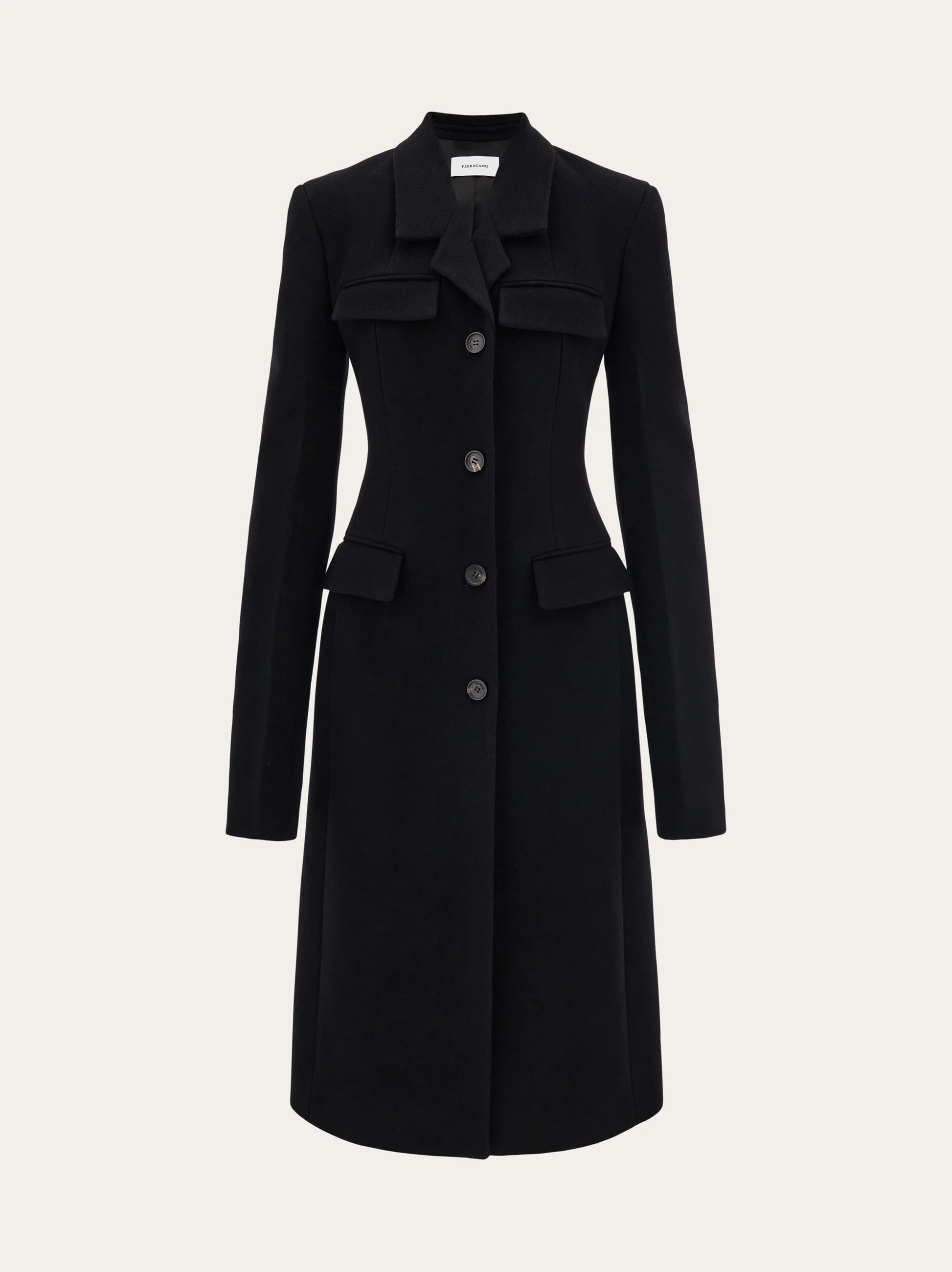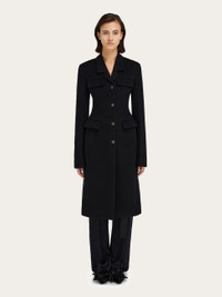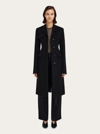The soft drape of this wool and cashmere coat draws a feminine silhouette. Maximilian Davis introduces the new season with sensual shapes and textures brought to life through impeccable tailoring. Four flap pockets echo the cuts of 20’s military uniform, a period that inspired much of this collection with an expressive and libertarian flair. - Composition: 90% pure virgin wool, 10% cashmere - Made in ITALY - Product code: 13H452 788111