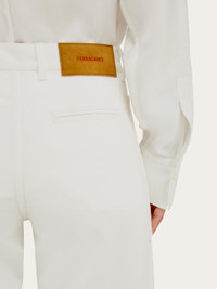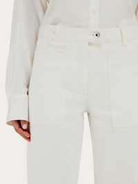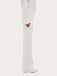 Western inspiration with a minimal cut, classic five pocket trouser cut from garment dyed flocked cotton with a distressed finish. The regular fit has a slightly flared leg, with large patch pockets on the front, and a single welt pocket on the back. The mix of workwear and tailoring details sees double stitching at the waist with an overlapping belt with doughnut button, and a custom suede tab at the back. Matching shirt available for a high end double denim look. - Composition: 100% cotton - Model measurements: Height 5' 10"/178 cm; Bust 31½ "/80 cm; Waist 23½"/60 cm; Hips 34 "/88 cm - Model wearing: 38 - Made in ITALY - Product code: 13G445 780548