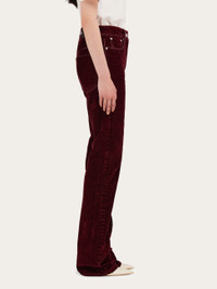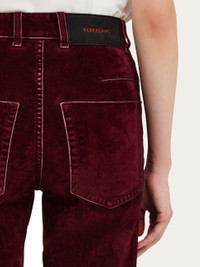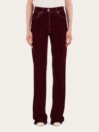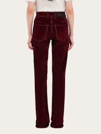 Soft, flocked cotton gives this garment dyed five pocket trouser an almost velvety feel. The straight fit is expertly cut according to the textbook denim details: custom doughnut buttons and rivets, with tonal stitching and a suede logo tab at the back. - Composition: 49% cotton, 49% viscose, 2% elastane - Model measurements: Height 5' 10"/178 cm; Bust 31½ "/80 cm; Waist 23½"/60 cm; Hips 34 "/88 cm - Model wearing: 38 - Made in ITALY - Product code: 13G444 780539