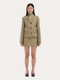 This new single breasted blazer is a testament to the aim of Maximilian Davis when creating this collection: timeless pieces with contemporary flair. With a squared shoulder and fitted waist, the sixties-inspired silhouette is detailed with visible stitching along the lapel, diagonal eyelets and flap pockets that accentuate the waist. An ironed crease runs along the sleeve. - Composition: 100% linen - Made in ITALY - Product code: 13H827 790237