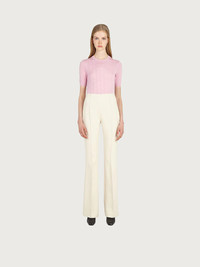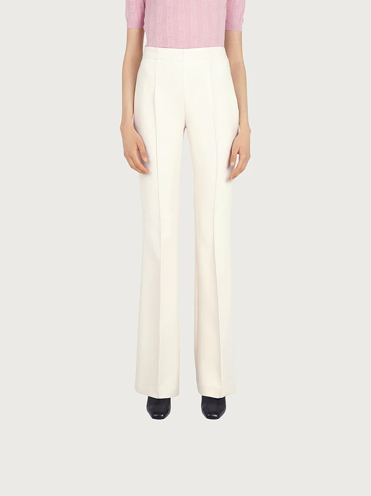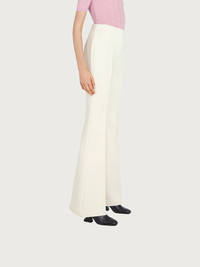 Comfort and fine quality with eye-catching style. This timeless trouser is smart and elegant, yet extremely easy to wear thanks to the soft-stretch fabric that guarantees all day comfort. The high waist and kick flare are flattering and contemporary, while the rib stitching elongates the leg. Wear with a sweater, a silk shirt or the matching jacket for a powerful look. Model measurements: Height 5'11"/180 cm, Bust 32"/81.5 cm, Waist 25½"/64.5 cm, Hips 34½"/87 cm - Composition: 50% pure virgin wool, 47% polyamide, 3% elastane - Made In ITALY