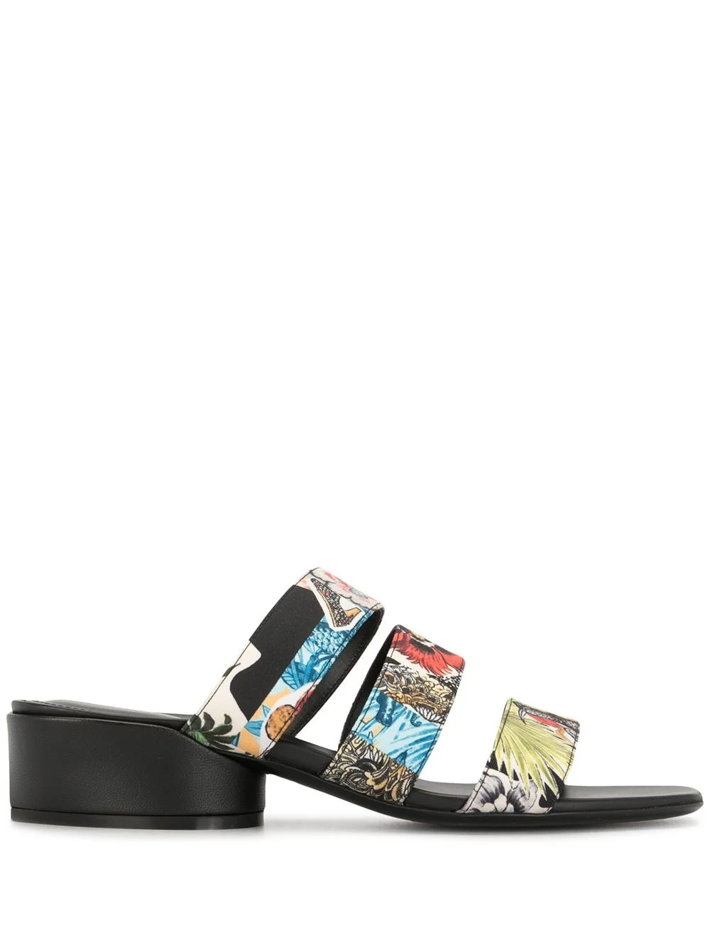 floral-print sandals Nothing says summer quite like a pair of sandals. Crafted from black leather, these sandals from Salvatore Ferragamo are infused with summer-time charm thanks to their all-over floral print. Perfect for warm weather. Highlights - Multicolour - Leather/rubber - Open toe - Flat leather sole - All-over floral print - Branded insole Made in Italy Composition Outer: Lamb Skin 100% Sole: Rubber 100% SIZE & FIT Measurement HEEL 1.37 in(3.5 cm)
