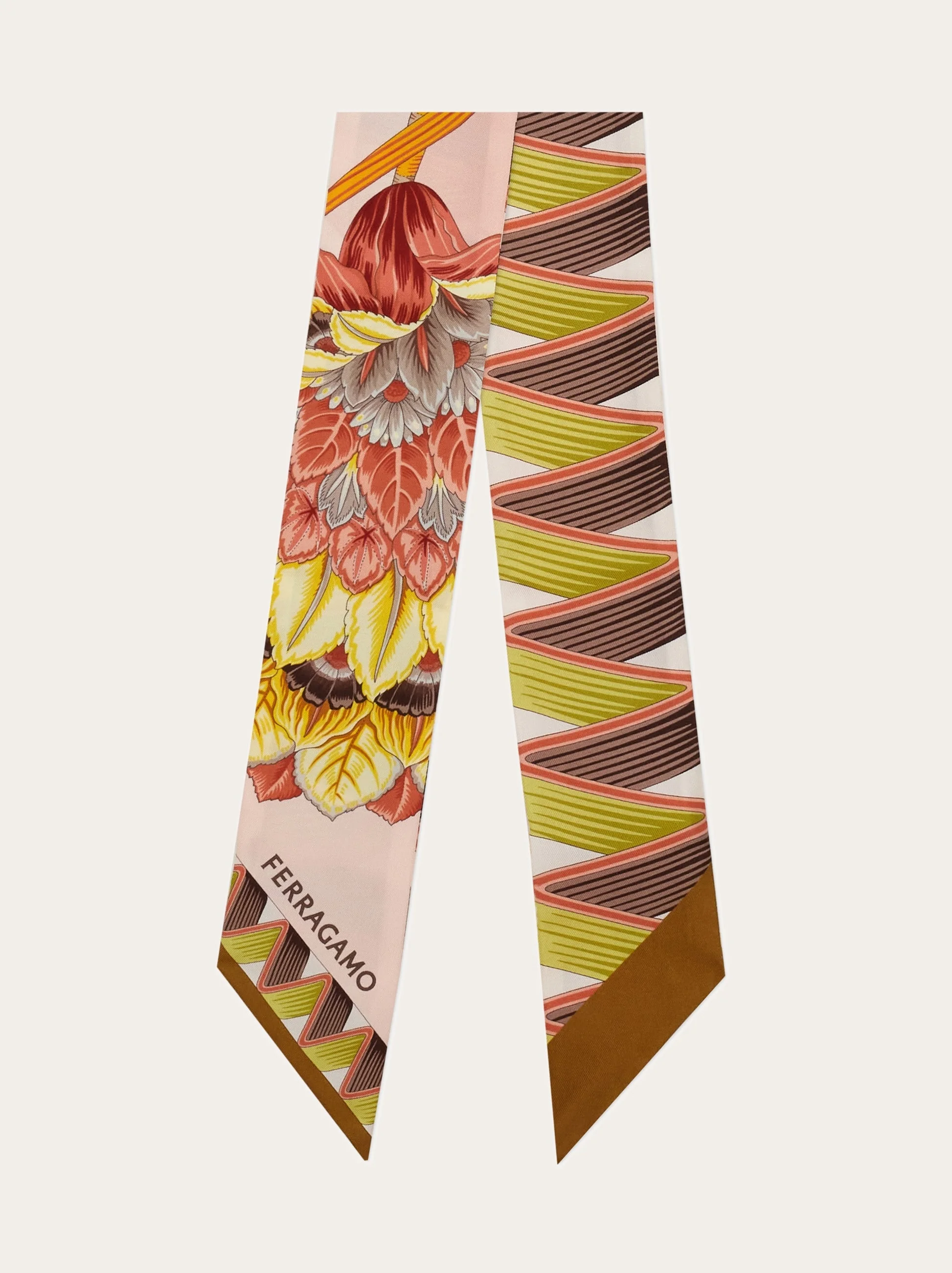 A most versatile accessory, the silk bandeau can be worn in your hair, around your neck, as a belt, or used to decorate your bag; the options are endless! This iteration is decorated with the Giada motif. - length 55.1 IN width 2.7 IN - Composition: 100% silk - Made in ITALY - Product code: 321134 785362