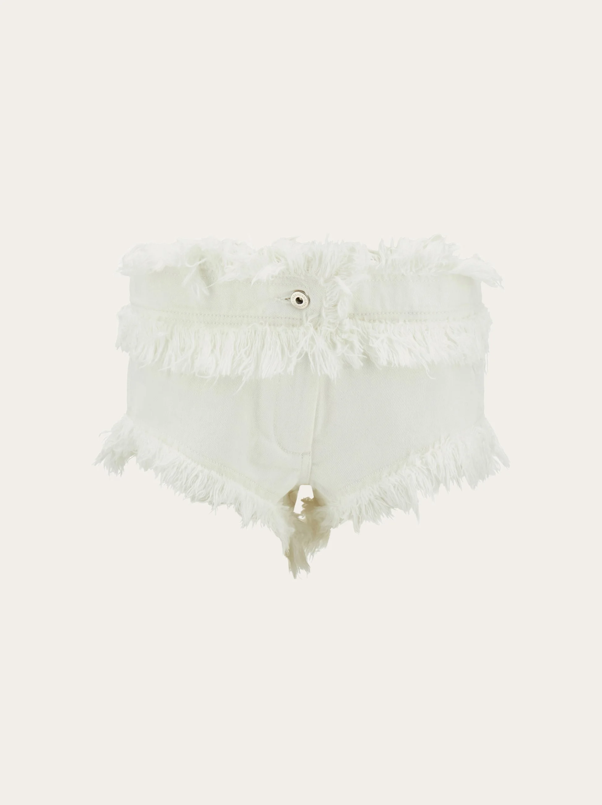 Frayed denim shorts with a high fashion feel. The play of overlapping frayed layers adds a dynamic twist to these cut offs that are designed to seriously flatter the female form. New contemporary femininity as dictated by Maximilian Davis. - Composition: 100% cotton - Model measurements: Height 5' 10"/178 cm; Bust 31½ "/80 cm; Waist 23½"/60 cm; Hips 34 "/88 cm - Model wearing: 38 - Made in ITALY - Product code: 13G948 782640