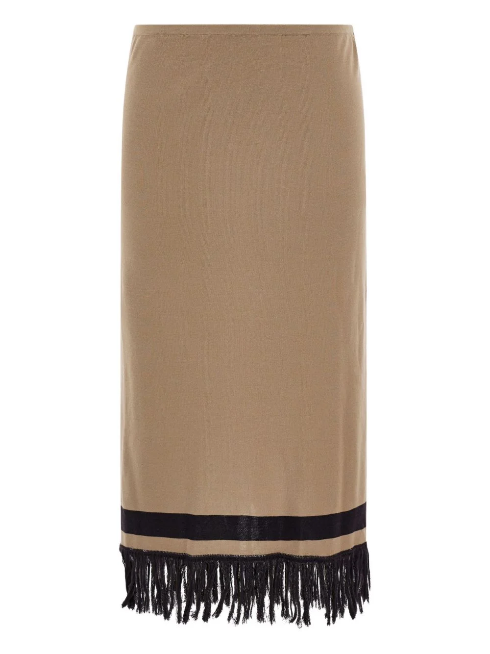 fringed colour-block mini skirt Highlights - Safari brown - Colour-block hem - Fringed detail - Side slits - Silk Made in Italy Composition Silk 100% Washing instructions Read Manufacturer Guidelines
