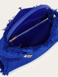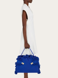 Maximilian Davis injects a playful twist into the much loved Hug silhouette. This iteration of the contemporary icon features fringed edges and two tone panels for a bold look that comes straight off the runway. Pair with the matching mules and dress for maximum impact. - A) Height 12.0 IN B) Length 15.7 IN C) Width 6.6 IN - Composition: fabric and calfskin - Large - Made in ITALY - Product code: 21A009 782719