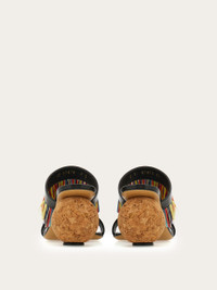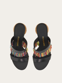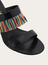 An exotic indulgence – this two-strap sandal is adorned with a feathery multicolored fringe across the vamp. The spherical heel is modeled on archival styles and carved from lightweight cork, which appears in multiple guises in the season's collection. Leather sole and non-slip heel tip. - Composition: nappa - Made in ITALY - Product code: 01K208 782676