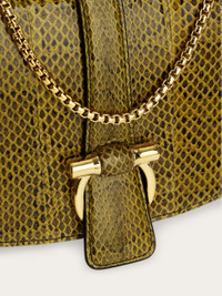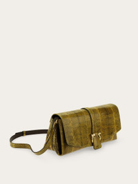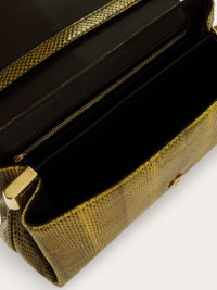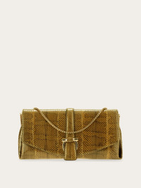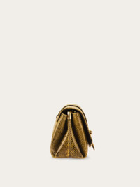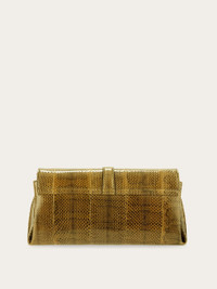 An ultra-luxurious iteration of the front flap silhouette in precious ayers leather. Punctuated by a golden Gancini clasp on the front flap, and golden tabs that gather the side bellows, it can be carried as a clutch, worn cross body or over the shoulder via the interchangeable leather and metallic straps. - A) Height 6.2 IN B) Length 12.2 IN C) Width 4.3 IN - Composition: ayers leather - Small - Made in ITALY - Product code: 21A343 786921