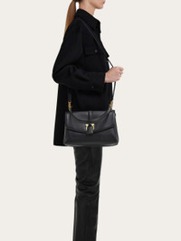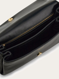 This new front flap handbag is a savvy blend of classic inspiration and contemporary style. The semi-rigid structure is softened by the voluminous billows that echo the shape of the Florentine lily. A large leather strap threads through a golden Gancio on the front flap, an iconic touch that duets with the golden hardware on the mid-length top handle. - A) Height 7.8 IN B) Length 10.6 IN C) Width 3.9 IN - Composition: calfskin - Handle drop: 7.1 in/18 cm - Small - Made in ITALY - Product code: 21A471 791203