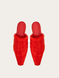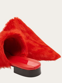 Take your city looks to the next level with this fashionable version of Ferragamo’s mules: Selestina Fur presents a long-haired kidskin upper in the collection’s pure shades. The elongated lines and slightly square toe boast contemporary inspiration, complemented by the patent leather insert on the insole. The flat design of the insert ensures comfort for your feet. - Heel 2 cm - Composition: kidskin - Made In ITALY