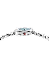 Gancini 22.5mm Highlights - Silver-tone - Stainless steel case - Quartz movement - Light blue - Geometric dial - Arrow hands - Round face - Screw-down crown - Stainless steel link bracelet - Folding clasp - Interchangeable strap - Water resistance up to 30m/3 atm - This item comes with a standard two-year warranty from the brand. Imported