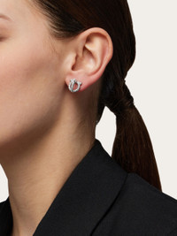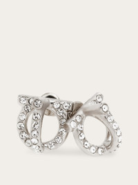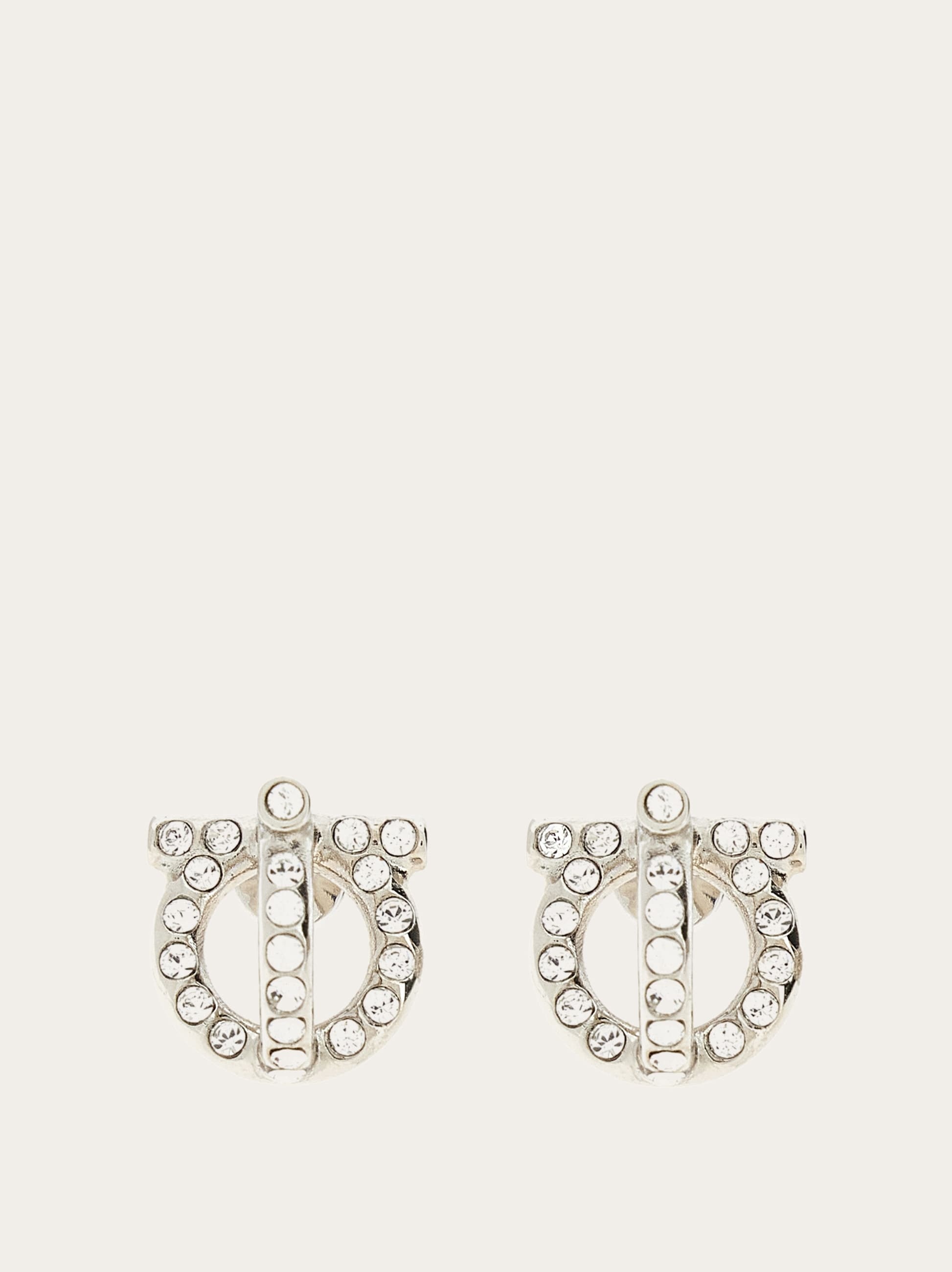Stud earrings with two intertwined Gancini bits create a 3D silhouette. The outline is covered in mini crystals for some serious sparkle. Compact, elegant and chic for day to night looks. - Composition: brass and glass - Made in ITALY - Product code: 760417 736295