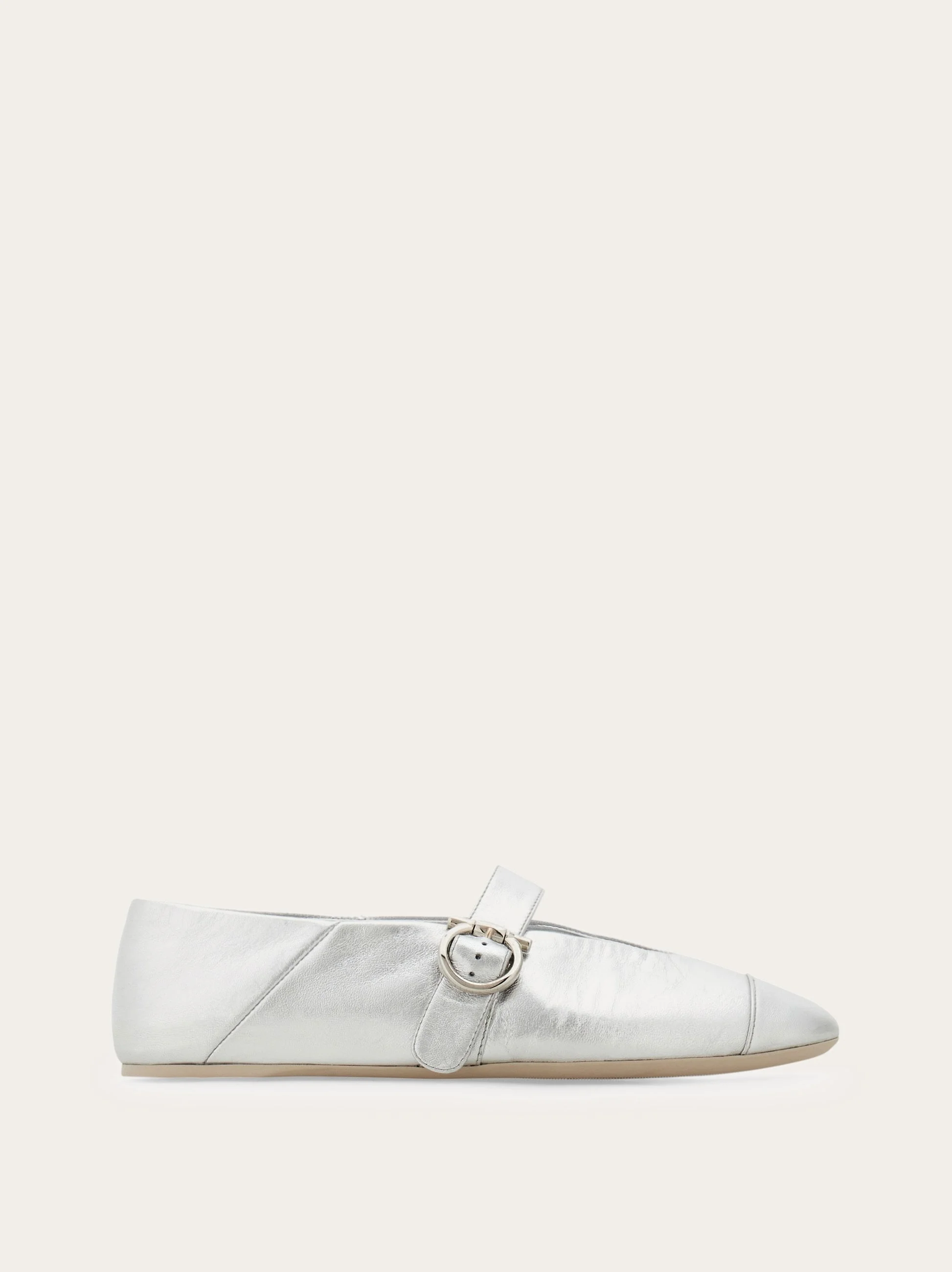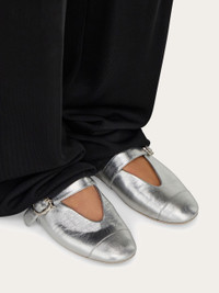 Modern minimalism with a feminine feel. Cut from laminated nappa leather, this contemporary take on the classic ballet flat has a wide strap across the instep held by a Gancio buckle. The V-neckline and almond tip capture the spirit of this season's collection. - Composition: laminated nappa - Heel 0.5 cm - Made in ITALY - Product code: 01J947 782667