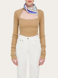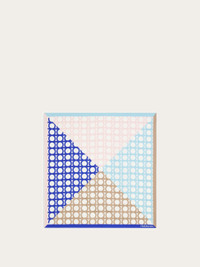 Bandana of innovative dimensions, with a Gancini pattern in degrade format divided into four large segments. Feminine in nuance and iconic in texture, it creatively interprets the new vision of women signed Maximilian Davis. - length 19.6 IN width 19.6 IN - Composition: 100% silk - Made in ITALY - Product code: 320996 783662