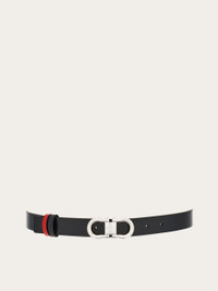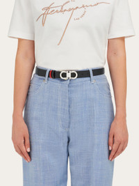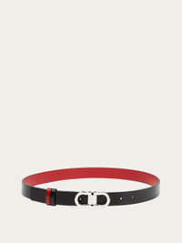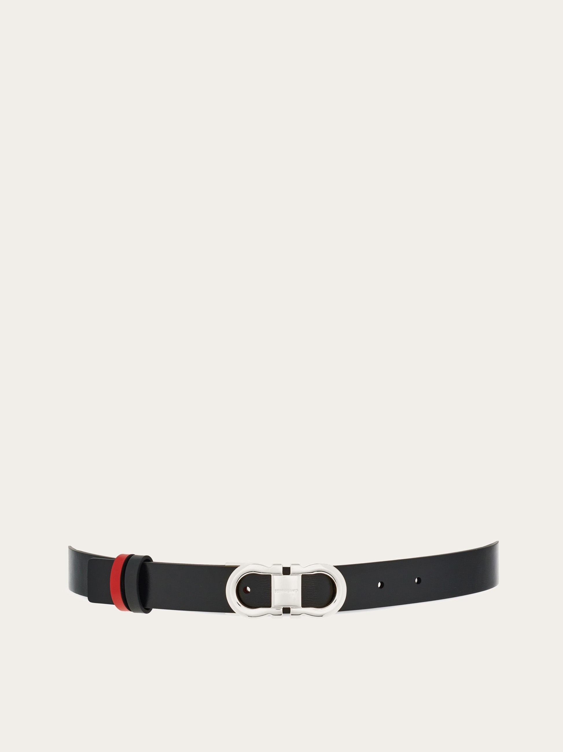 Subtle for an extra touch of femininity, reversible for use that transcends everyday looks. Hammered calfskin belt with reversible construction, adjustable length and two-tone design. The iconic Gancini buckle in a palladium finish is offered with a squared profile for a graphic and more current note. The adjustable length allows for a customized fit and style. We invite you to check our size guide for more information. - height 0.9 IN - Composition: hammered calfskin - Reversible and adjustable belt with detachable buckle - Made in ITALY - Product code: 230294 781813