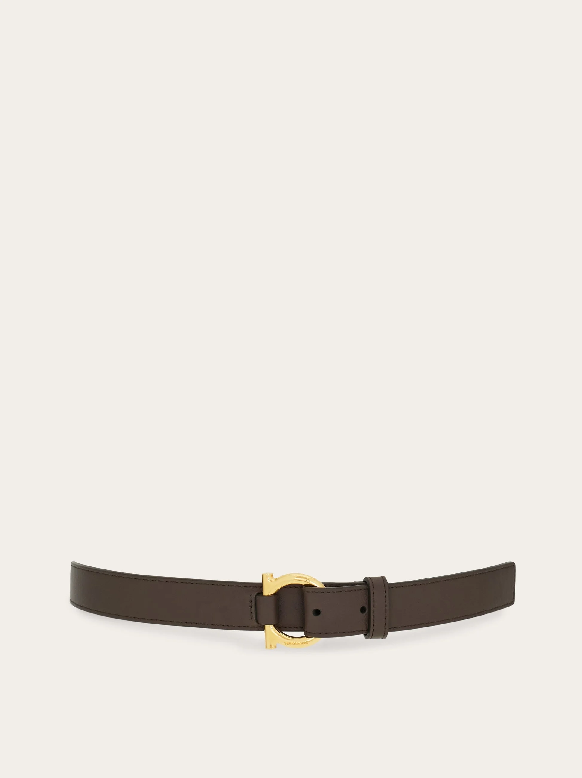 With its clean design and casual allure, this belt blends rich textures, expert craftsmanship, and the iconic touch of a gold-tone Gancini. Finished with a stitched strap and bold seasonal hues. - height 0.9 IN - Composition: calfskin - Made in ITALY - Product code: 230474 790111