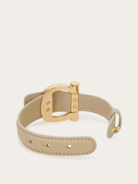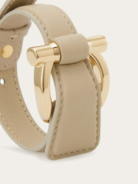 Urban and bold, this soft leather bracelet is decorated with a large gold Gancini detail intertwined on the front. The adjustable fastening provides surprising versatility. - Composition: 50% brass 50% calfskin - Made in ITALY - Product code: 760825 780853