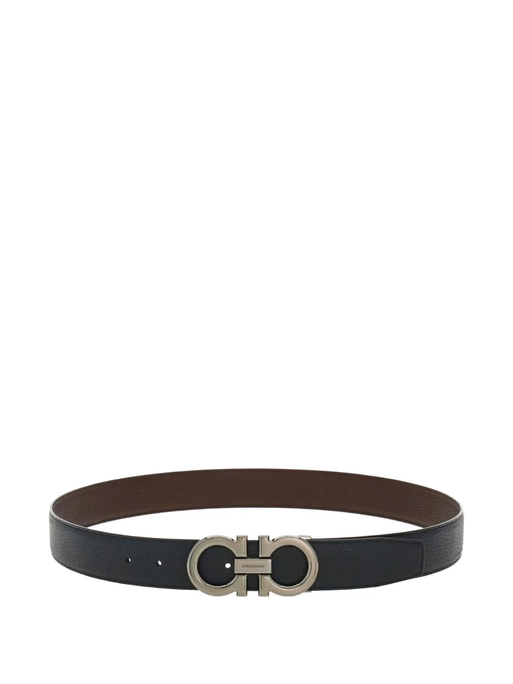 Gancini buckle belt Tired of your trousers falling down? This black calf leather double Gancio buckle belt from Ferragamo came just at the right time to save you from any awkward encounters. Buckle up. Highlights - Black - Leather - Buckle fastening - Adjustable fit - Calfskin leather strap Made in Italy Composition Calf Leather 100% SIZE & FIT Measurement Minimum Length 29.52 in(75 cm) TOTAL LENGTH 35.43 in(90 cm) WIDTH 1.37 in(3.5 cm)