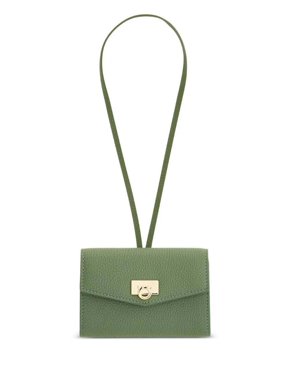 Gancini buckle card holder charm Highlights - Seagrass green - Calfskin - Gold-tone hardware - Card slots - Buckle detail - Lanyard strap Made in Italy Composition Outer: CALFSKIN 100% SIZE & FIT Measurement DEPTH 0.78 in(2 cm) LENGTH 4.33 in(11 cm) WIDTH 2.95 in(7.5 cm)